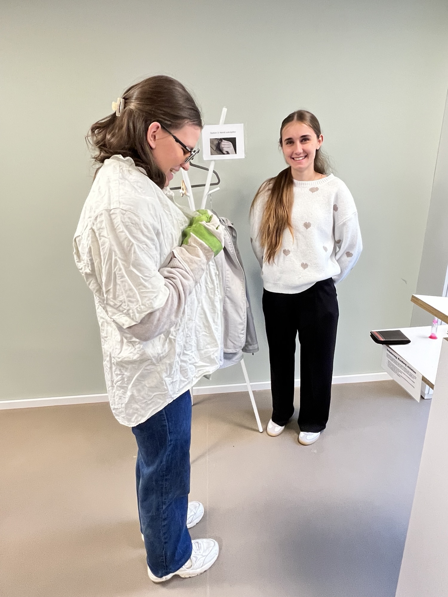 Besonders eindrücklich war der anschließende Parcours, der uns an verschiedenen Stationen erleben ließ, wie herausfordernd der Alltag für Betroffene sein kann. So mussten wir beispielsweise einen Teller mit Erbsen auslöffeln, während wir nur über einen Spiegel sehen konnten, Flüssigkeit von einem Gefäß in ein anderes umfüllen, Gegenstände nachfahren, uns einen Einkaufszettel merken oder uns mit Handschuhen und einer Brille anziehen, die die Sicht stark einschränkt. Diese praktischen Erfahrungen machten die Einschränkungen sehr greifbar und halfen uns, uns besser in die Situation von Menschen mit Demenz hineinzuversetzen.