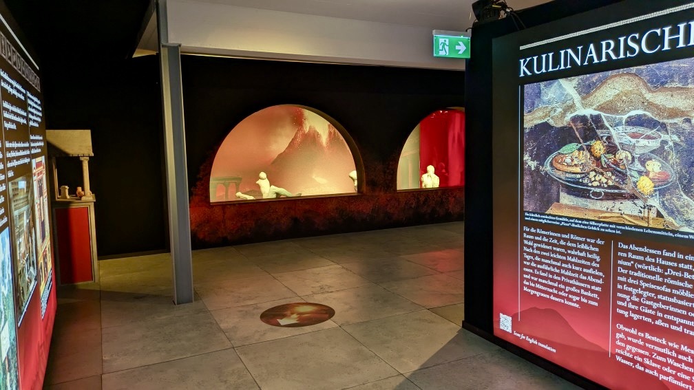 Die letzten Tage von Pompeji – genau diese Tage konnten wir hautnah miterleben! Mit unserer Tutorin Frau Sinkel sind wir als Lateinkurs der elften Klassen am 12. Dezember nach Frankfurt aufgebrochen, um uns die Ausstellung über Pompeji anzuschauen. Neben Tafeln mit Infotexten und Ausstellungsstücken, wie beispielsweise kleinen Skulpturen, besaß die Ausstellung VR Brillen, auf welchen wir sehr detailreich die letzten Tage von Pompeji bis zum Ausbruch des Vesuvs gezeigt bekommen haben und eine Villa aus dieser Zeit „besichtigen“ konnten. Zusätzlich gab es einen Raum, in dem Szenen aus dieser Zeit an die Wände projiziert wurden und so die Möglichkeit entstand, vollständig in die Stadt Pompeji eintauchen zu können.