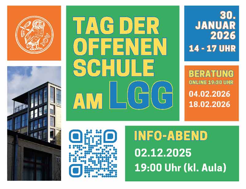 Um Sie als Erziehungsberechtigte möglichst umfassend zu unserer besonderen Schule zu informieren, gibt es neben dem Tag der offenen Schule zwei Informationsabende. In der Regel finden die Termine vor den Weihnachtsferien und im Januar/ Februar eines Jahres statt. An diesem Informationsabend werden Sie in einem ersten Veranstaltungsteil von unserem Schulleitungsteam, dem Schulelternbeirat sowie der Schülervertretung zu den Besonderheiten unseres LGGs informiert. In einem zweiten Teil des Informationsabends stehen Ihnen die verschiedenen Ansprechpartnerinnen und Ansprechpartner unseres LGGs für Ihre individuellen Anliegen und Fragen zur Verfügung.