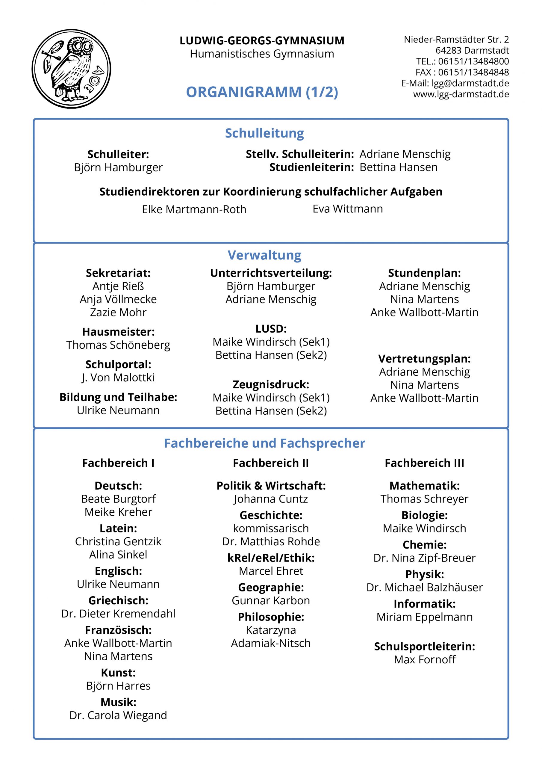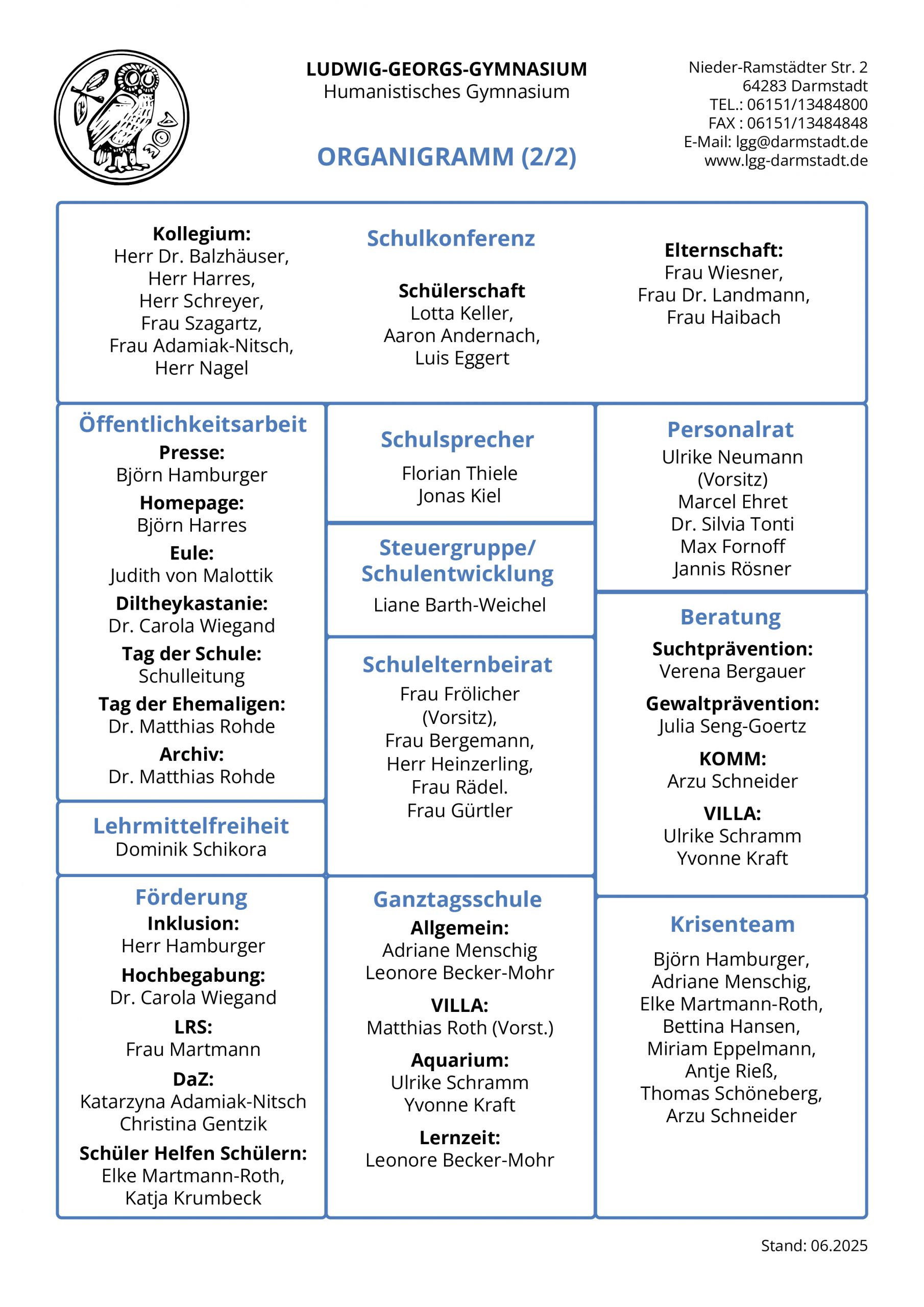 Aktuelle Zuständigkeiten am LGG Hier gibt es das Organigramm auch zum Download (pdf.). Wichtige Formulare Zu unserem Kollegium